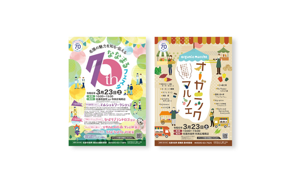 名張市政70周年イベント「ななまるフェスタ」「オーガニックマルシェ」チラシ制作