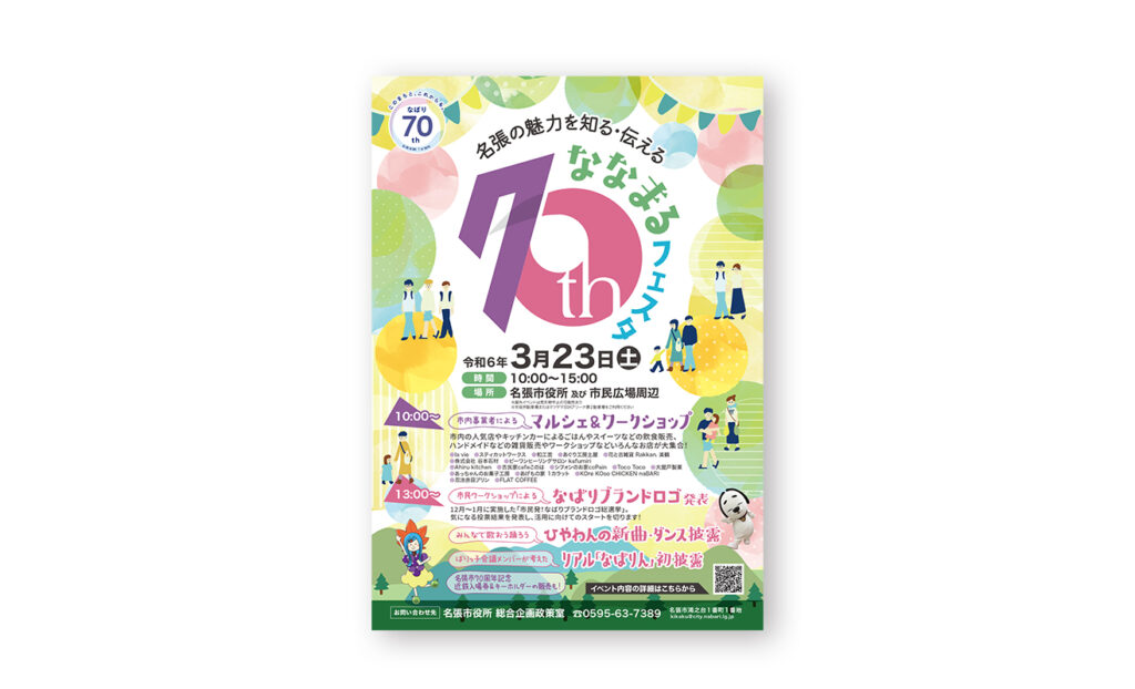 名張市政70周年記念「ななまるフェスタ」&「オーガニックマルシェ」開催告知用のチラシを作成させていただきました。